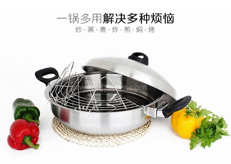 芮柏厨五层不锈钢炒锅不粘锅无烟.