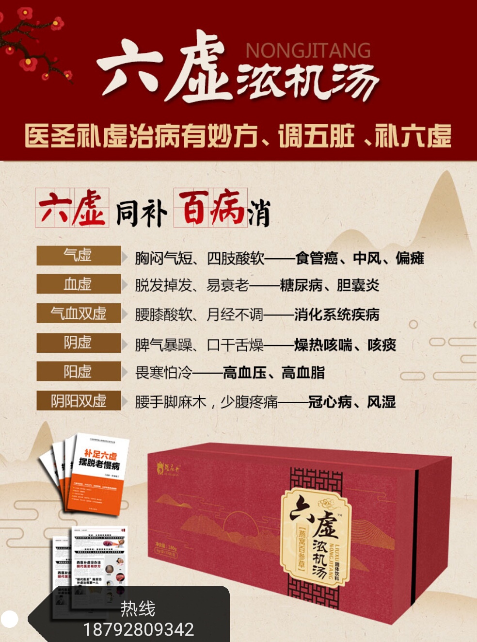 俗语说:“十病九虚”,老年人之所以容易遭受高血压、冠心病、脑血管病、糖尿病、肠胃病、风湿骨病等等一些列慢性疾病的侵扰,其实都是因为你太“虚”。六虚浓机汤通过名贵大补方,五脏同调,大补“六虚”,助你彻底远离疾病困扰。