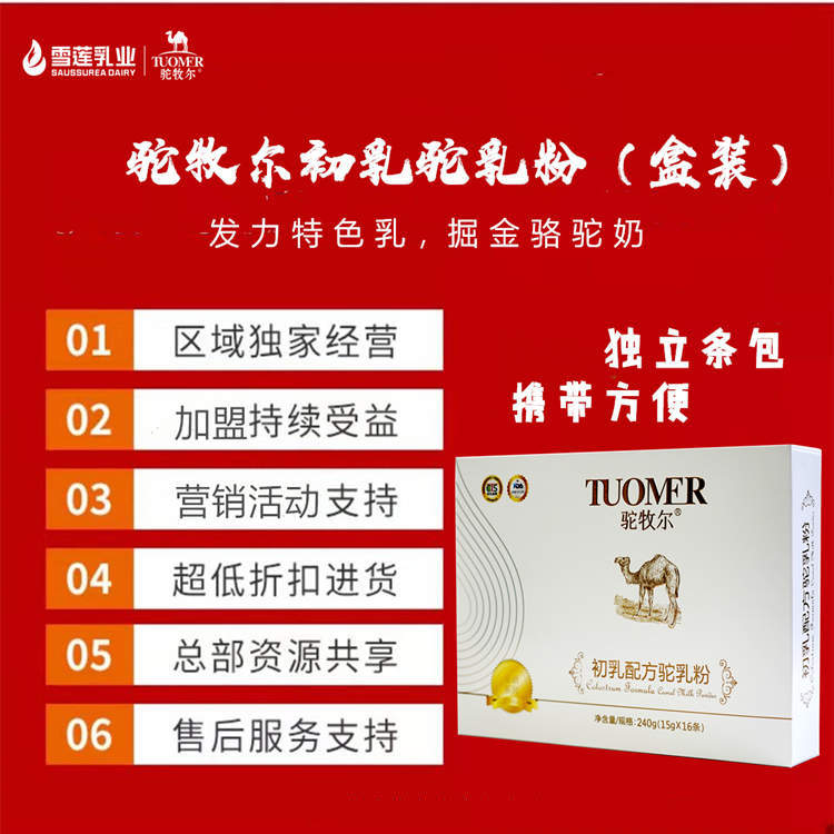 驼牧尔是伊犁雪莲乳业旗下自营驼奶粉。伊犁雪莲乳业有限公司成立于2005年,是一家集畜牧养殖、乳制品研发、生产经营于一体的全产业链现代化乳品企业。从奶源基地规划,自建有机牧场管理,原料乳验收到生产全过程以及生产运输销售,公司严格执行质量体系标准,并严格遵守乳制品企业良好生产规范。